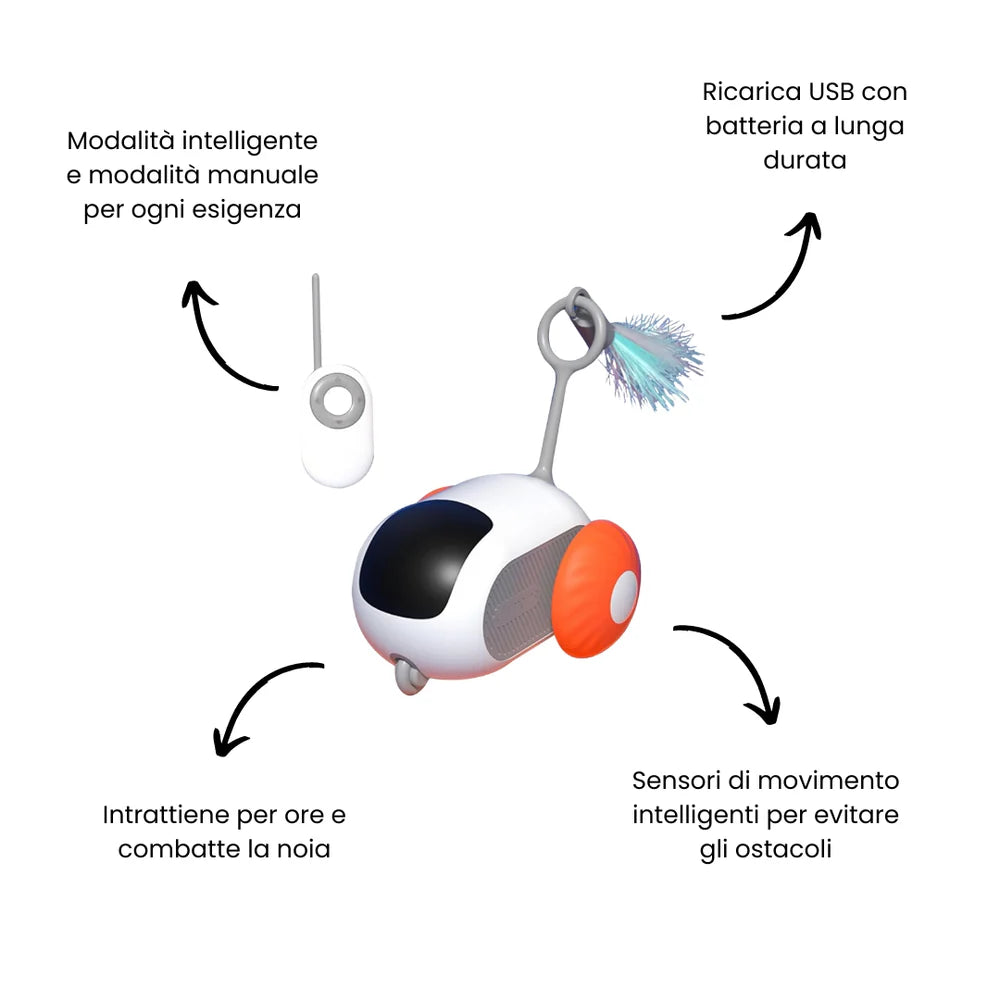La nostra macchinina è la scelta perfetta per intrattenere i tuoi gatti anche all'interno della casa, con due modalità di gioco, offre un'esperienza coinvolgente e adattabile.